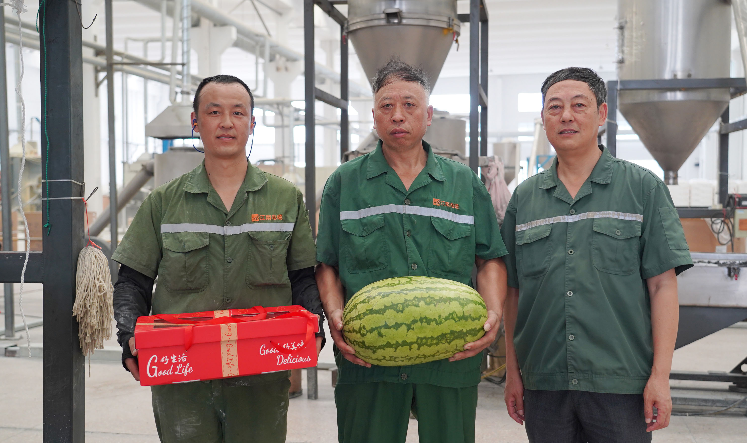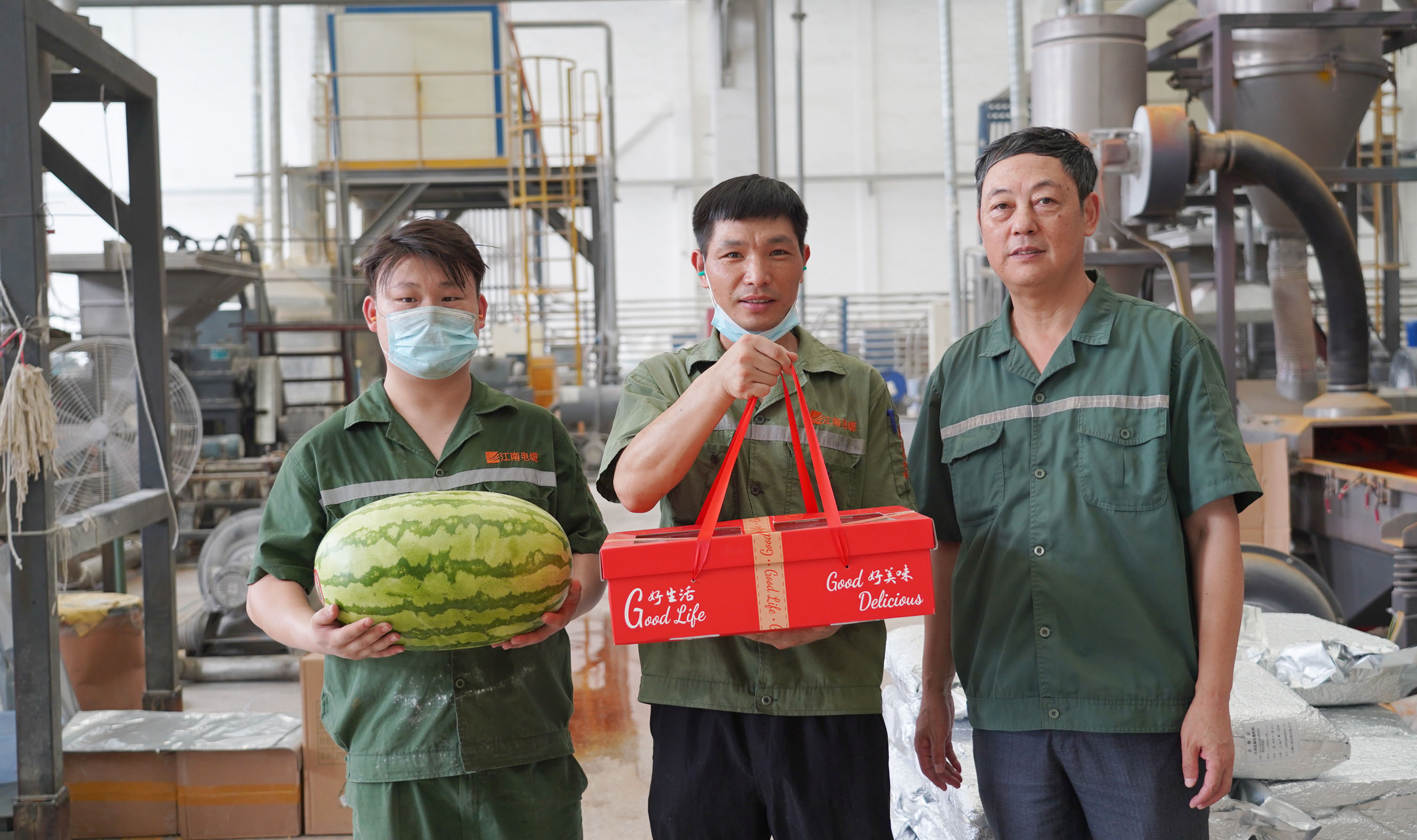 副總經(jīng)理周駿、總經(jīng)理助理陸建平赴防火鋁線電纜分廠九車間送清涼
